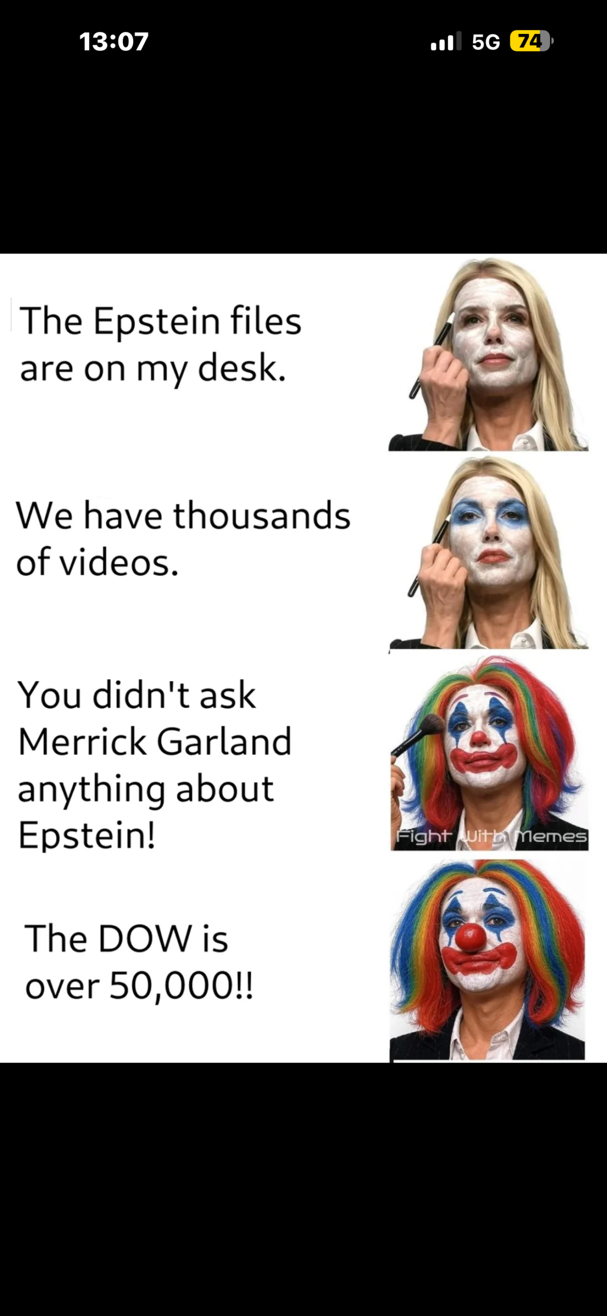It is worth noting here that Bondi was not, technically, wrong about the numbers. The Dow did close above 50,000. The Nasdaq did hit record highs. These facts are simply irrelevant to the question of whether her department is actively protecting men who participated in the sexual abuse of minors. But relevance, like the gutter, is behind her.