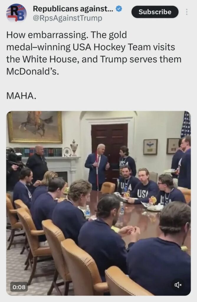 As we barrel toward November 2026, a delicious aroma is wafting through the corridors of the GOP: the unmistakable scent of panic. It turns out that running a government like a daytime game show replete with surprise hockey teams might impress the boisterous “USA” crowd, but it does little for the 61% of voters who think the President’s policies are steering the country into a ditch . The Republican ship is taking on water, and it’s coming from three distinct holes: a catastrophic polling collapse, a cover-up scandal of Epsteinian proportions, and the small matter of the President of the United States potentially being blackmailed by a foreign power.