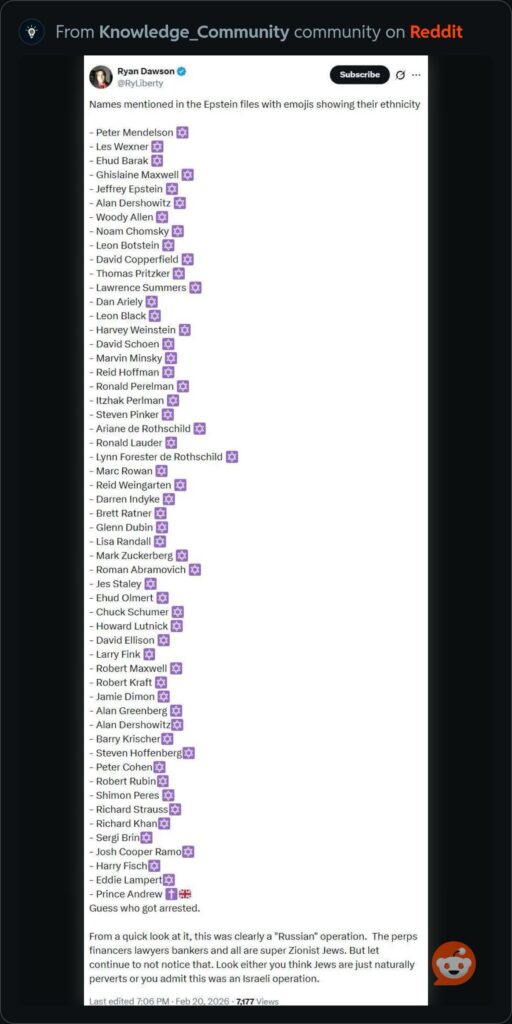 But thanks to the latest dump of the Jeffrey Epstein files—a veritable treasure trove of human degradation—the mask has slipped. And what we see underneath is not just a militaristic state, but a network of perverts, Mossad handlers, and corrupt politicians whose moral rot is so advanced that it guarantees the regime’s inevitable doom.