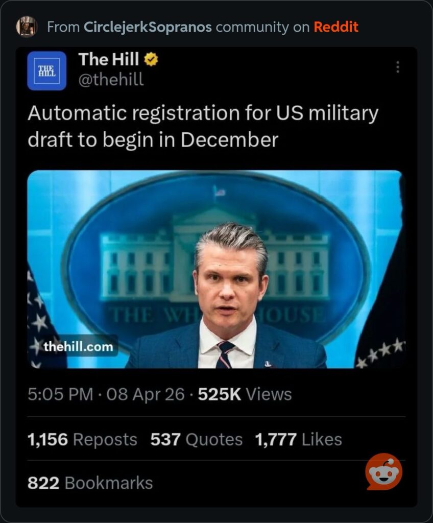 So here we are. In a move that surprised absolutely no one with a functional memory, the White House announced this week that the United States will begin automatically registering young men for the military draft starting December 2026. The new system, signed into law by President Donald Trump, will auto-enroll all eligible males aged 18 to 26 in the Selective Service pool. According to the administration, it’s a routine “workforce realignment” to streamline compliance. White House Press Secretary Karoline Leavitt, perhaps inadvertently auditioning for a role in a dystopian Netflix series, stated that while a draft isn’t in the current plan, the President “wisely keeps his options on the table.”