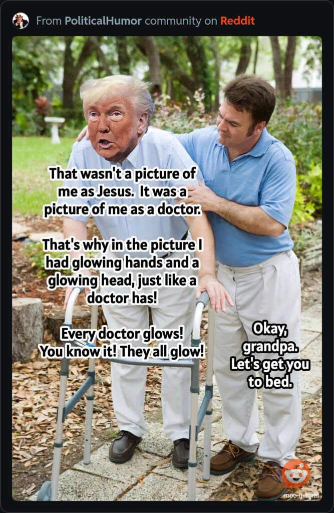 The response was immediate and brutal. CNN’s Dana Bash, who is not a Christian, looked at the image and deadpanned: “I see that’s Jesus”. Jon Stewart, upon learning that the sick man in the photo bore an uncanny resemblance to himself, joked that he hadn’t realized “my look had reached leper territory” and demanded to know whether Trump even cared about lying anymore. One popular theory circulating on X suggested that the president had simply misheard his staff: they told him the image was “doctored,” and he assumed they meant he was a physician. If true, it would be the most on-brand explanation yet.